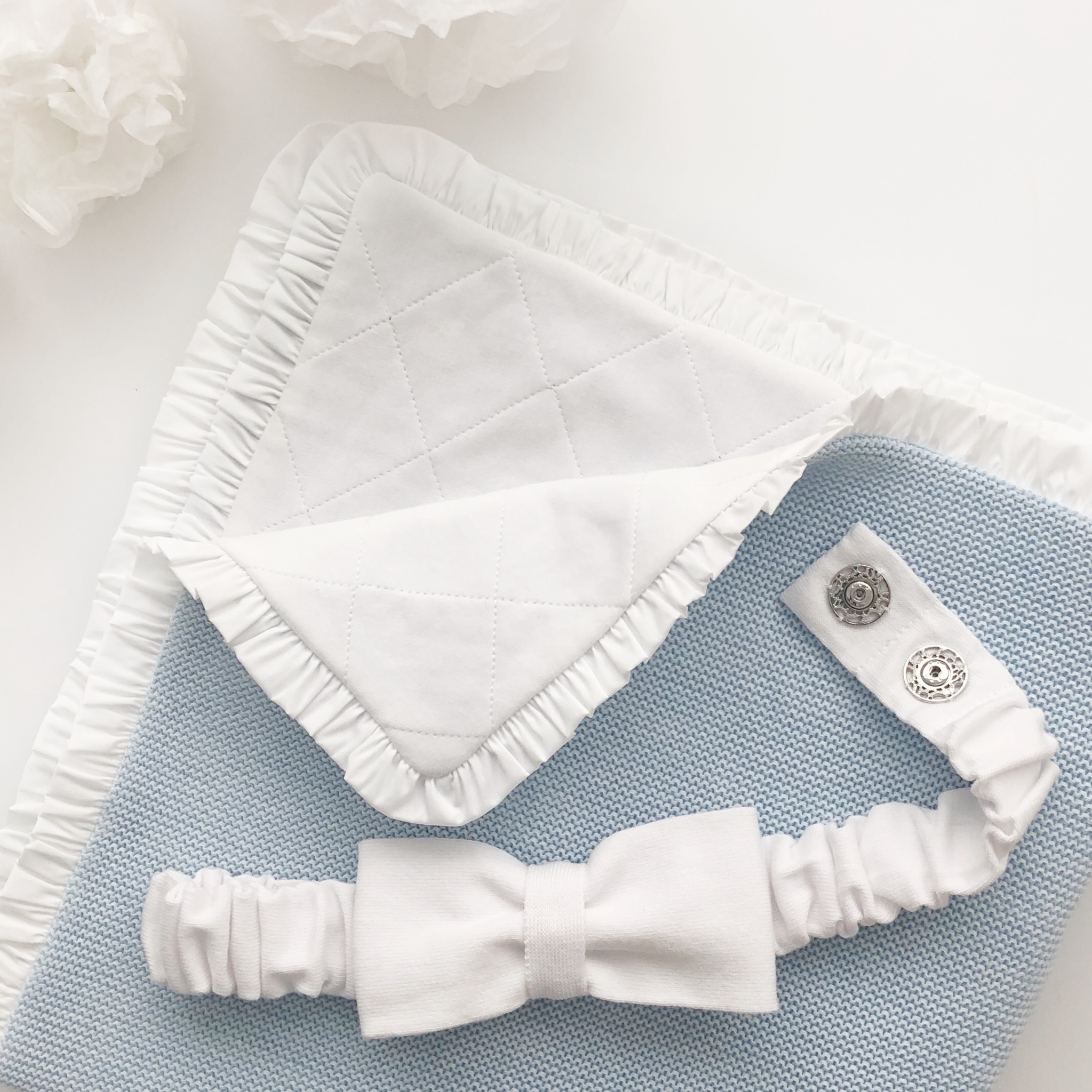 Комплект на выписку из 100% хлопка содержит все необходимое для новорожденного, упакованный в белоснежную коробочку с бантиком, он станет отличным подарком на рождение малыша.